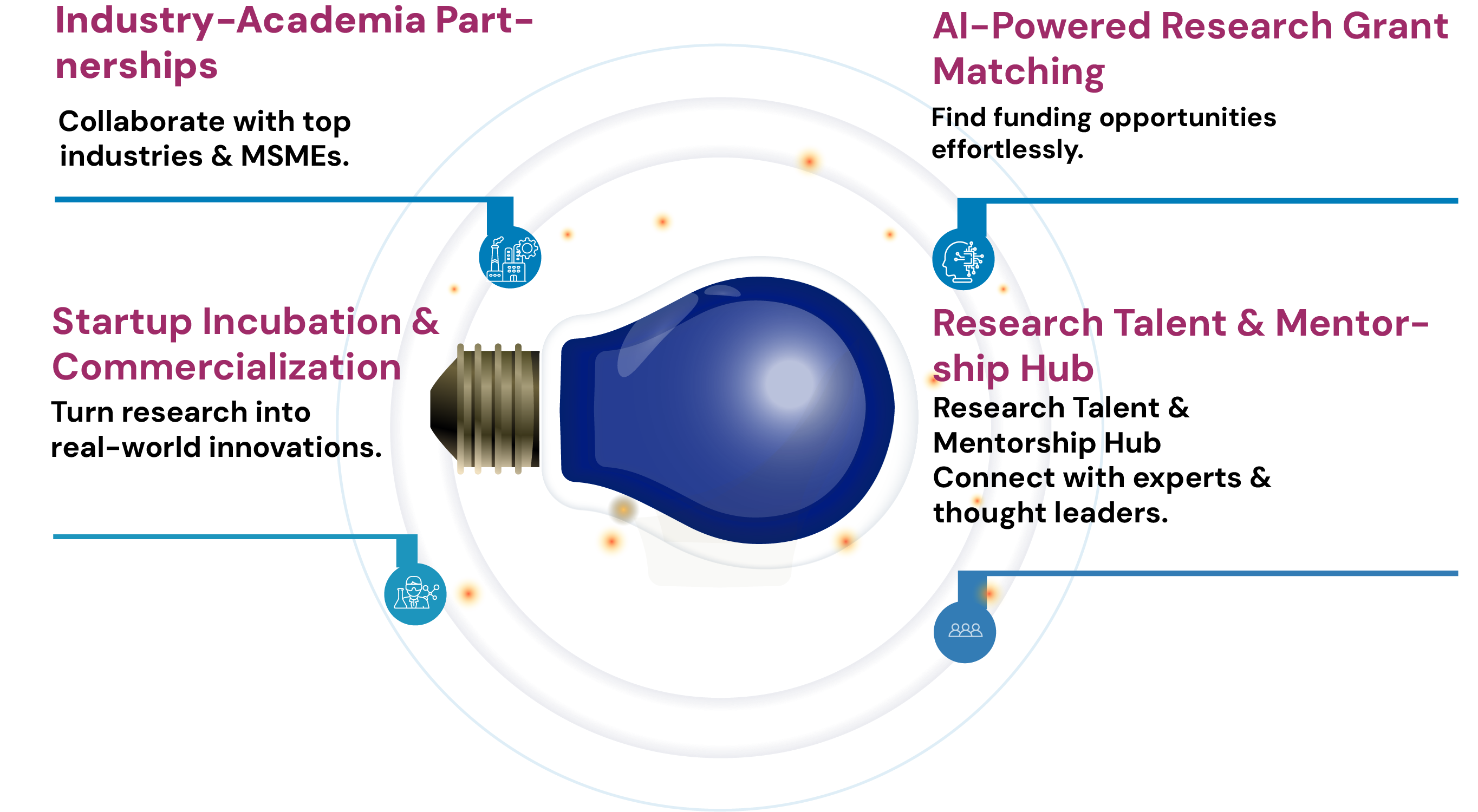 AI-powered Faculty Development Programs (FDPs) for researchers & educators. Training on grant writing, research methodologies, and commercialization strategies. Access to global research mentorship & leadership programs.